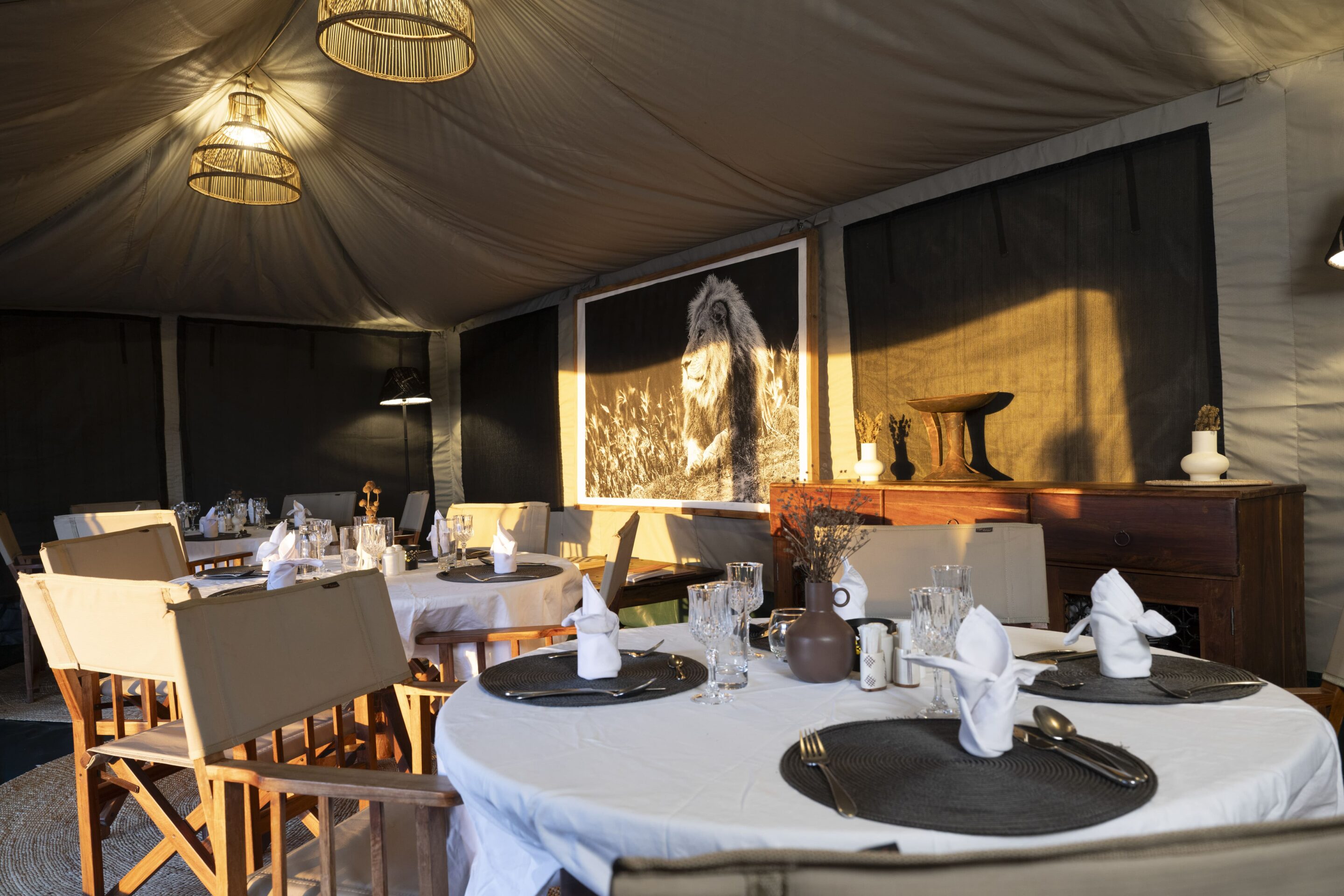Le cœur du camp bat dans sa tente mess ou autour du feu. Deux espaces conviviaux où vous pourrez savourer de délicieux repas et partager vos aventures autour d’un verre. Les camps proposent une sélection de boissons, parfaites pour vous détendre après une journée de safari. La soirée, quant à elle, se termine dans une ambiance magique autour du feu de camp, sous un ciel parsemé d’étoiles à couper le souffle.