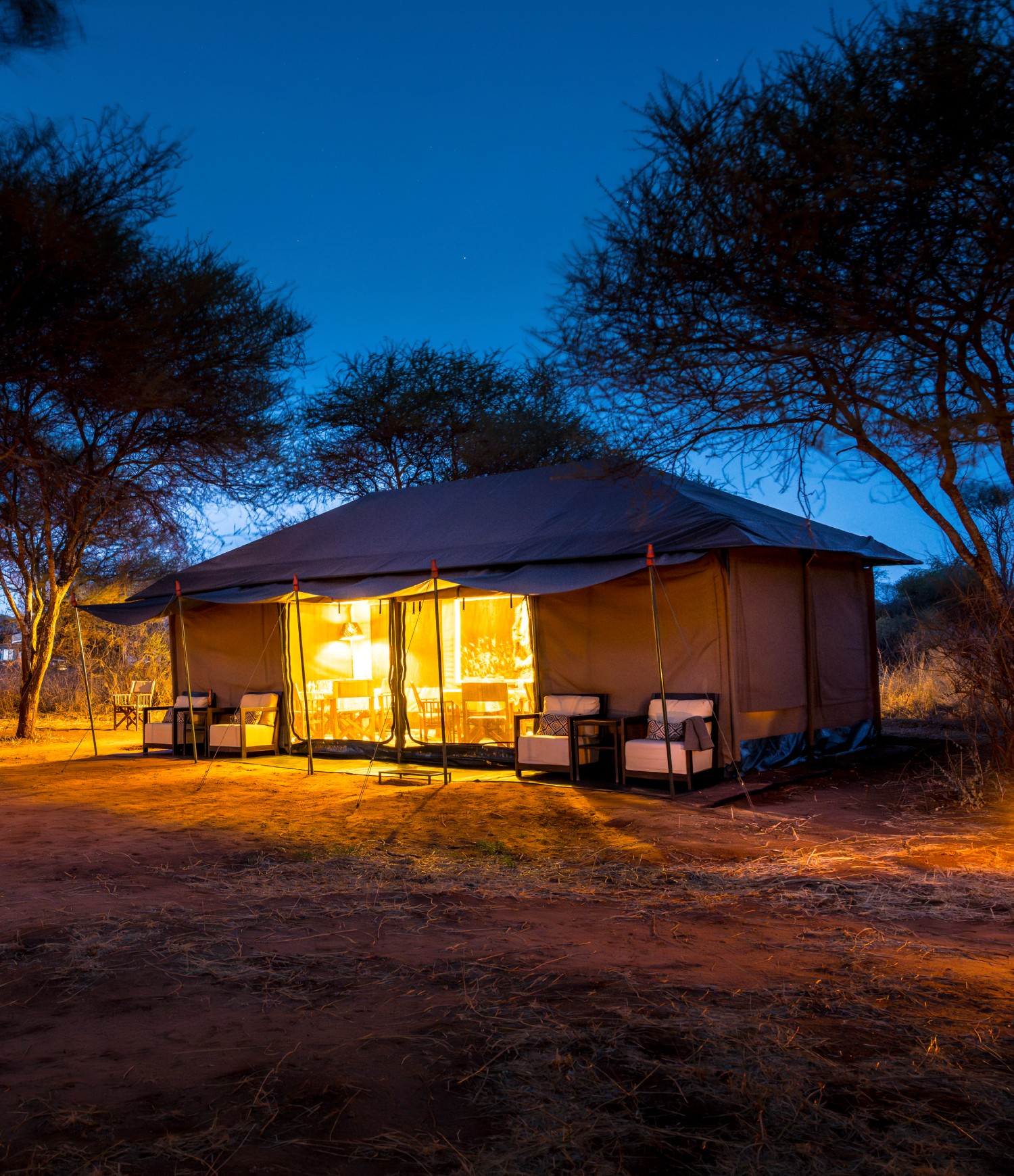 Deux camps intimes et raffinés, l’élégance simple de tentes de style safari, des couleurs naturelles et des matériaux locaux pour vous accueillir dans une ambiance des safaris « Out of Africa ».